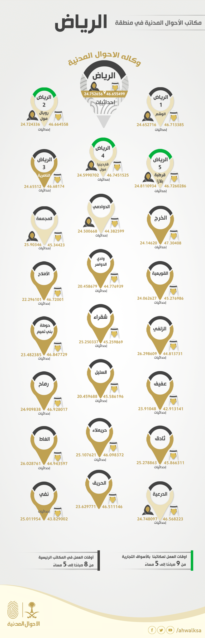 العناية بالعملاء Twitterren الأحوال المدنية تقدم خدماتها في منطقة الرياض من خلال هذه المكاتب Https T Co N5rf8gsg4h