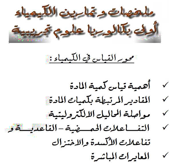 ملخصات دروس الكيمياء الاولى باك مع تمارين تطبيقية