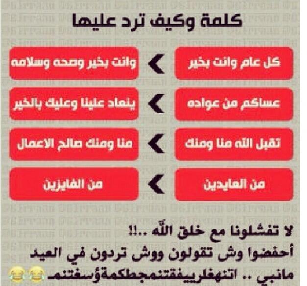 سارة محمد اليافعي Di Twitter احفظوا وش تردون بالعيد لاتصيرون مثلي كنت اقول طلاسم لمن يقولون لي من العايدين الفايزين العيد السعودية فن الرد Http T Co Myn7zcwvl9